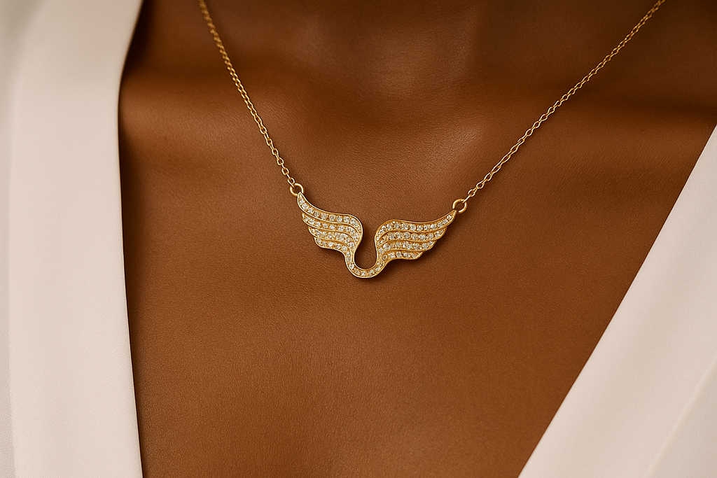 Collier pendentif en acier titane – Design Géométrique et Ailes